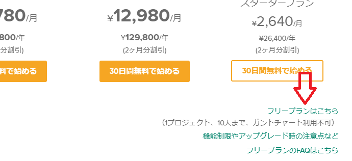 「フリープランはこちら」というリンクがあるので、