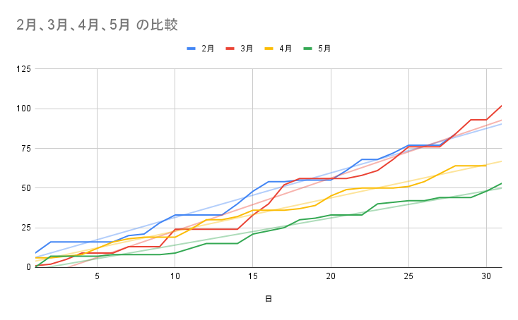 ※2月は1日から忙しかった、でも3月は勾配がきついので全体通じると忙しかった、と言えるのかな。