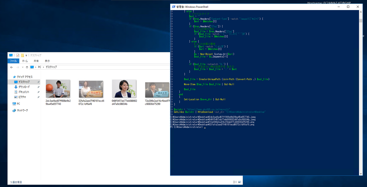 特定のURLから画像を引っ張ってくるシェルを叩かせてみます。